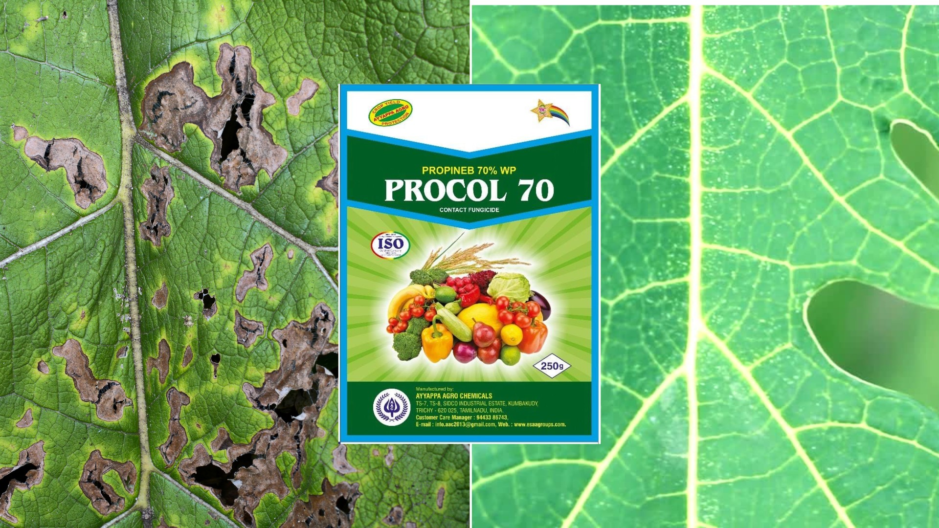 Procol 70 is a broad-spectrum contact and preventive fungicide. It effectively controls various fungal diseases such as early and late blight, downy mildew, scab, fruit spots, anthracnose, and rust on crops including rice, potato, chili, tomato, grapes, apple, and cotton. Propineb works by disrupting multiple metabolic processes in fungi, which helps prevent resistance development and promotes healthier crops with improved yield and quality. Additionally, it supplies zinc to plants, enhancing their immunity and Vigor